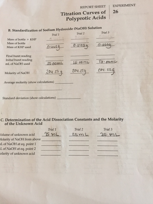 Titration Of A Polyprotic Acid Lab Reportplease Help Chegg